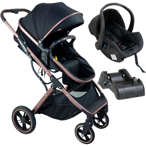 Carrinho de Bebê Travel System Zoe Preto com Bebê Conforto e base - Galzerano